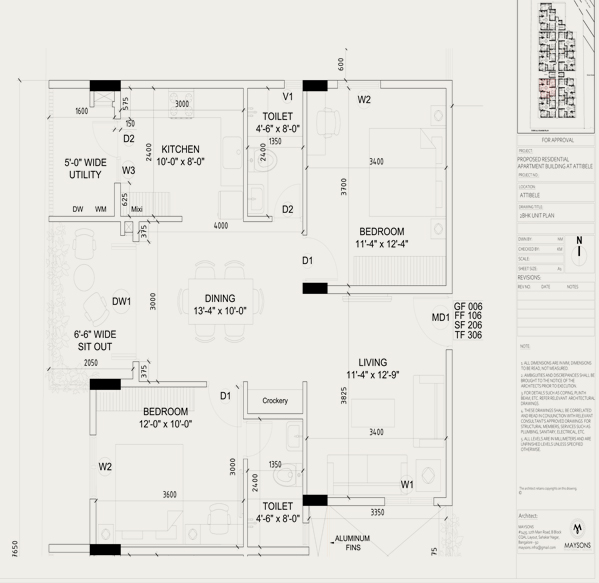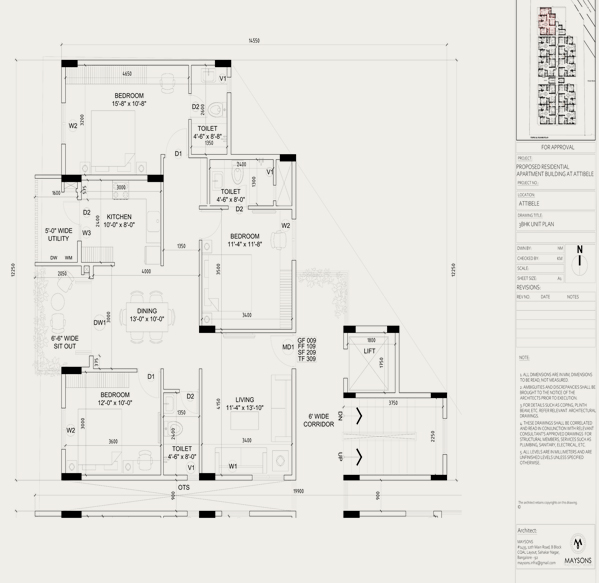 03 BHK Type-2 Unit Plan, SBUA = 1250.73 SQ.FT